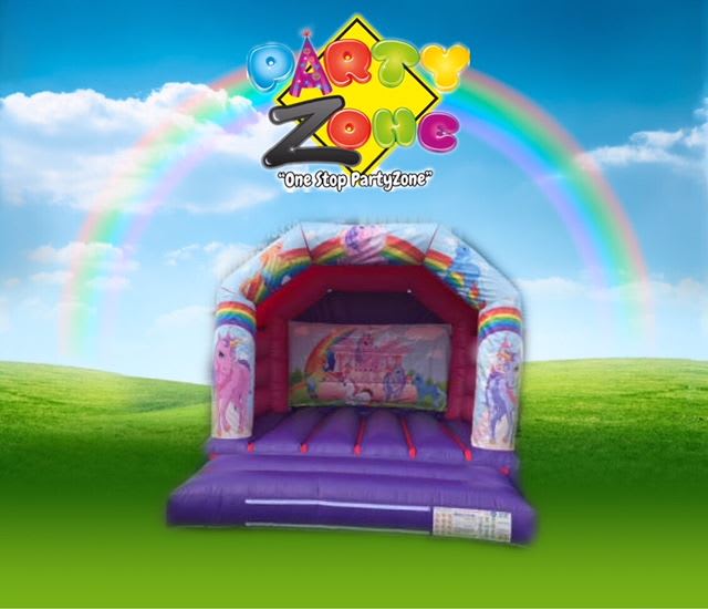 Our beautiful Unicorn themed bouncy castle is the perfect theme for anyone that loves unicorn, Horses and ponies and is available to rent now.