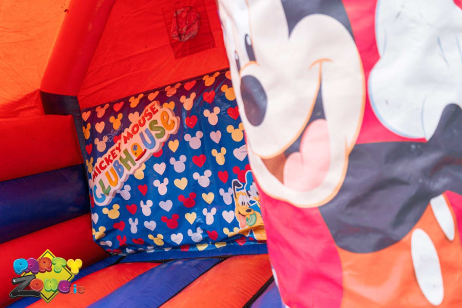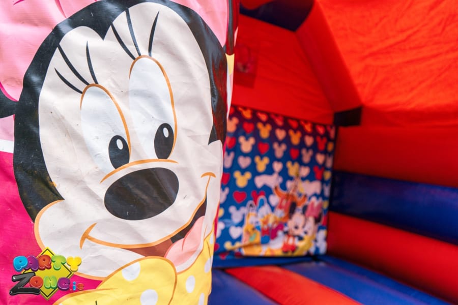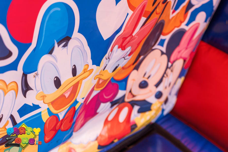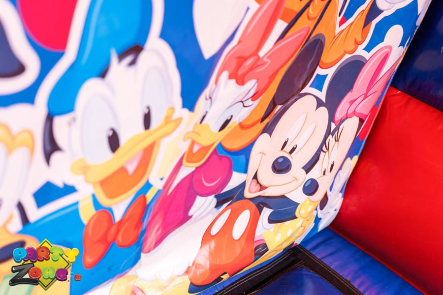 World-famous mouse duo Mickey and Minnie Mouse are pleased to attend your event on this Mickey and Minnie Mouse Bouncy Castle! It also features vibrant images of Mickey's friends, including Donald Duck and Goofy.