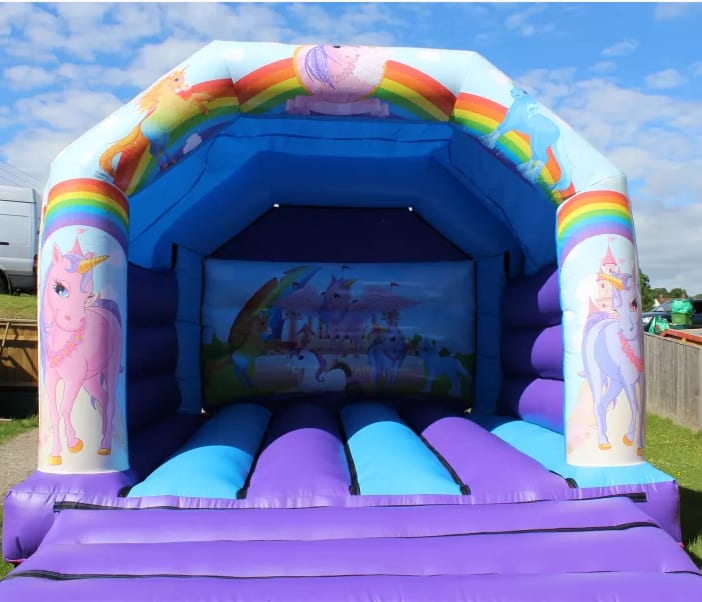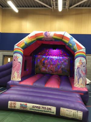 Our beautiful Unicorn themed bouncy castle is the perfect theme for anyone that loves unicorn, Horses and ponies and is available to rent now.