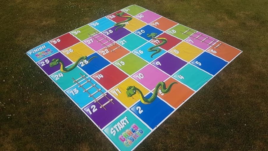 Players use themselves as the counters and move from square to square in a bid to be the first to get to the end. Watch out for the slittery snakes who will drop you down and try and get those ladders to get you up faster.