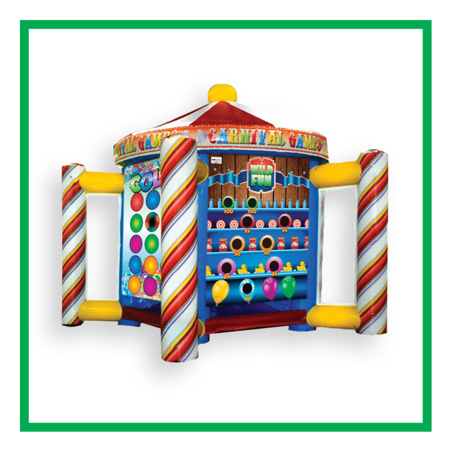 This inflatable includes 5 games with vibrant artwork that will make any space feel like a carnival. This 5 in 1 also includes built in rings to display prizes.