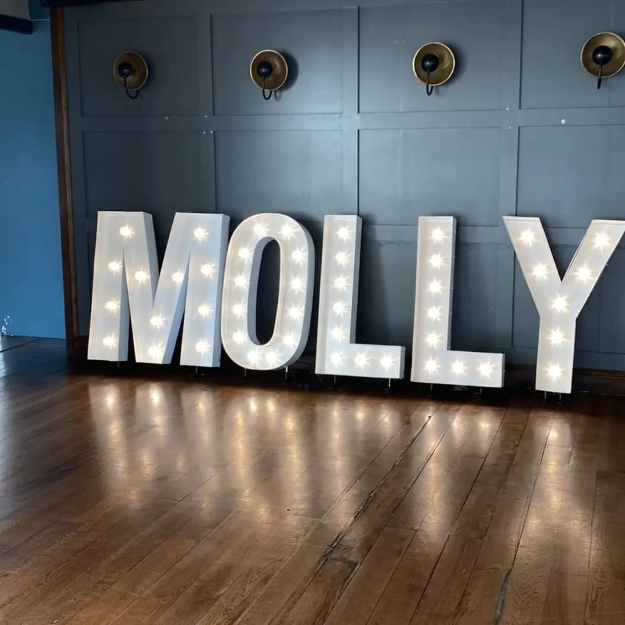 4ft LED letters are all the trend, The letters are all fitted with vintage fairground lights, which gives them a truly nostalgic feel, along with our modern contemporary font style, you could not ask for a better personalised feature.